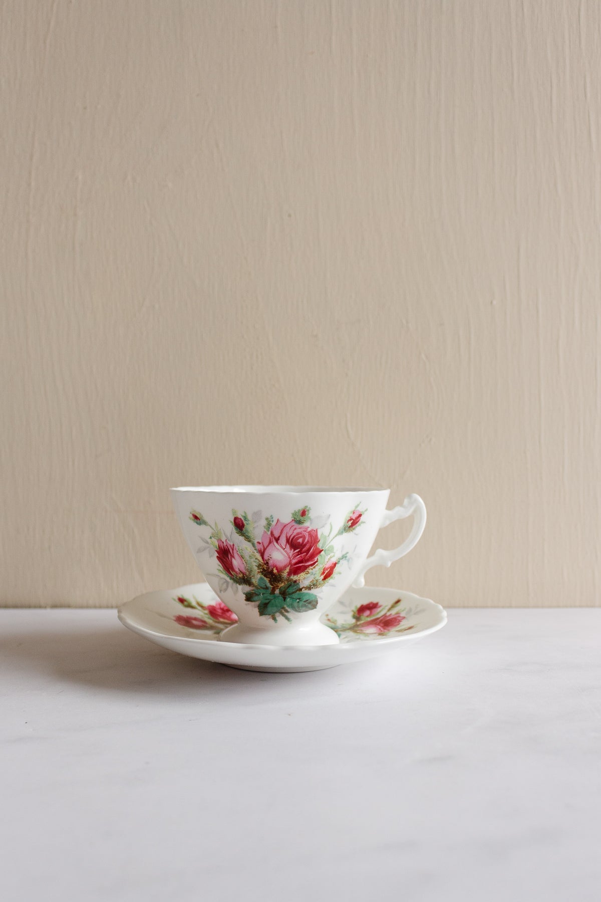 There's something sophisticated and classic about a gorgeous teacup and saucer. Florals have always been a popular theme among teacups, yet each piece is a different work of art. This highly collectible teacup is in excellent condition with no chips or cracks. Sourced from a home in Le Havre.