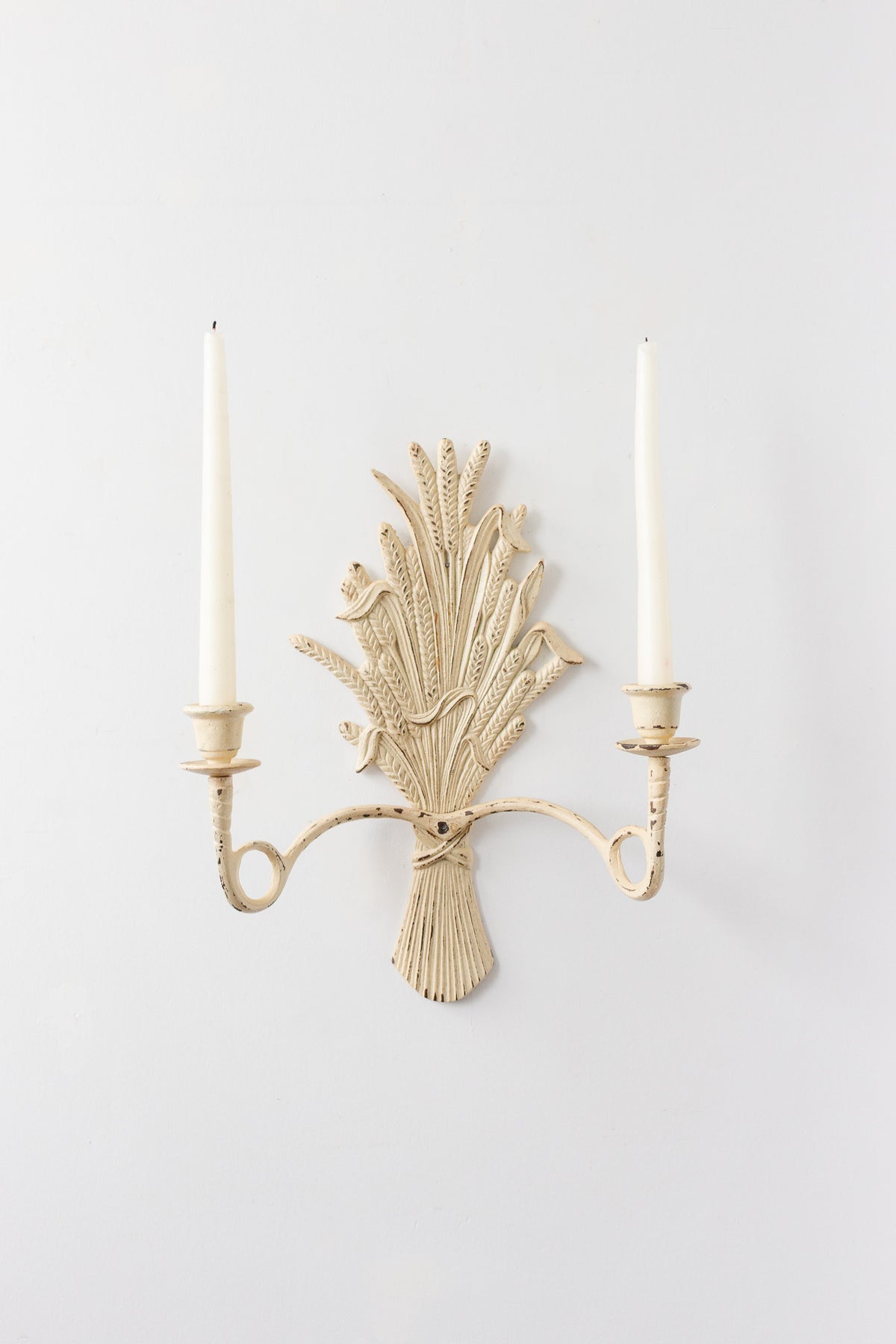 vintage french cast iron painted wheat sconce