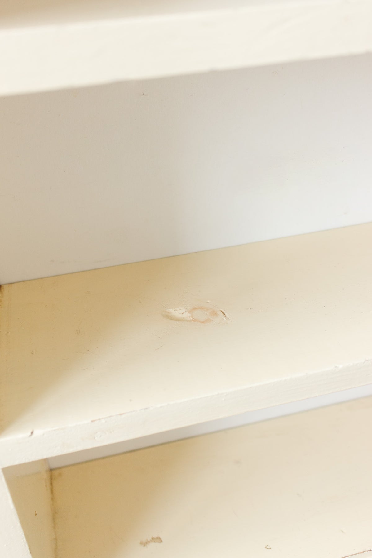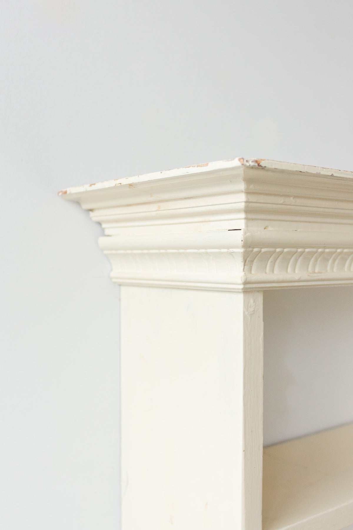 A vintage farmhouse wall-mounted shelf crafted in wood, with a timeworn surface that speaks to years of use. Its simple, functional form captures the honest charm of rural interiors, offering both display and storage in one. Perfect for holding crockery in a kitchen, stacked linens in a bathroom, or treasured objects in a living space, it brings a touch of rustic authenticity to contemporary homes.