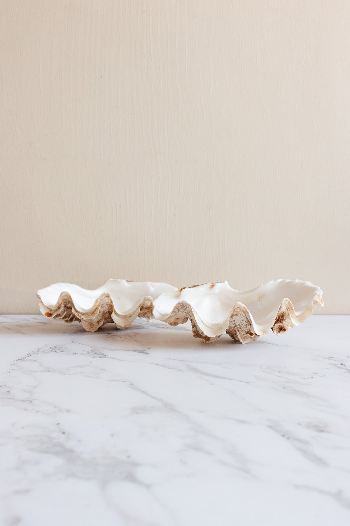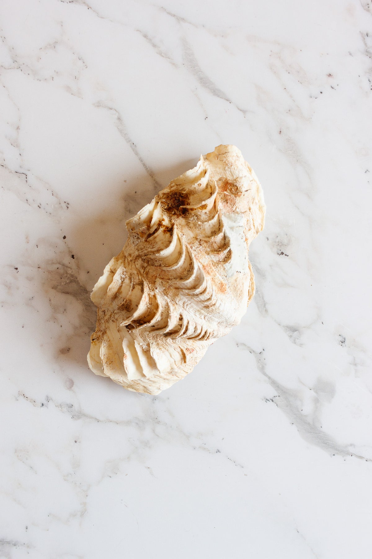 Add gorgeous organic tone and texture with this absolutely stunning tridacna crocea shell, the smaller cousin of the gaint clam. An incredible natural specimen and decorative element that has the distinctive ribbed, fluted appearance similar to the giant clam, but grows to a significantly smaller size.