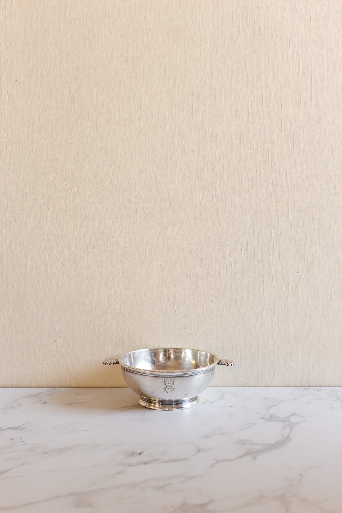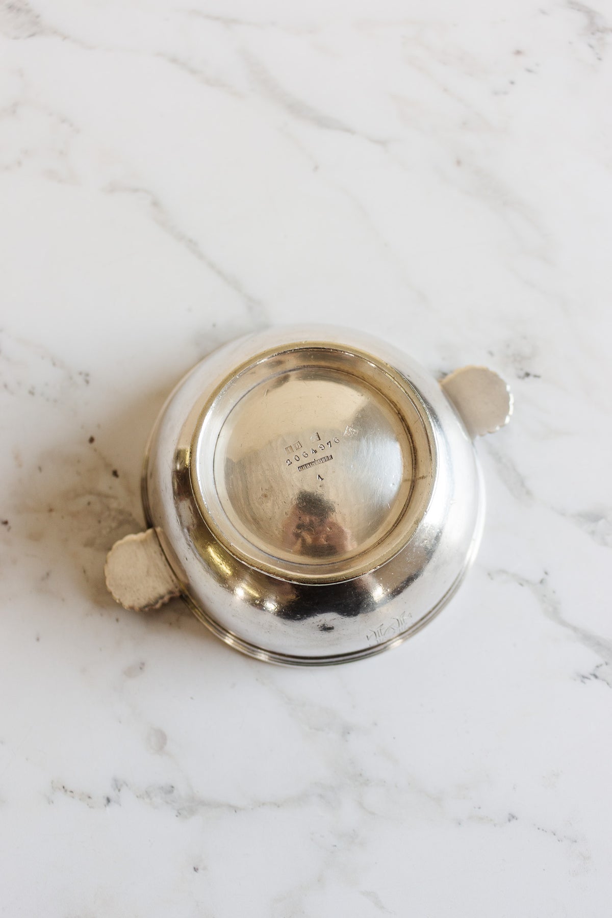 This delicate silver candy dish from Cristofle bears the monogram “HC,” adding a touch of personalized elegance. Perfect for serving small treats or as a refined accent on a tabletop, its classic design reflects the timeless sophistication of French silver. Sourced from a brocante in Marseille, it carries both history and charm in every polished curve.