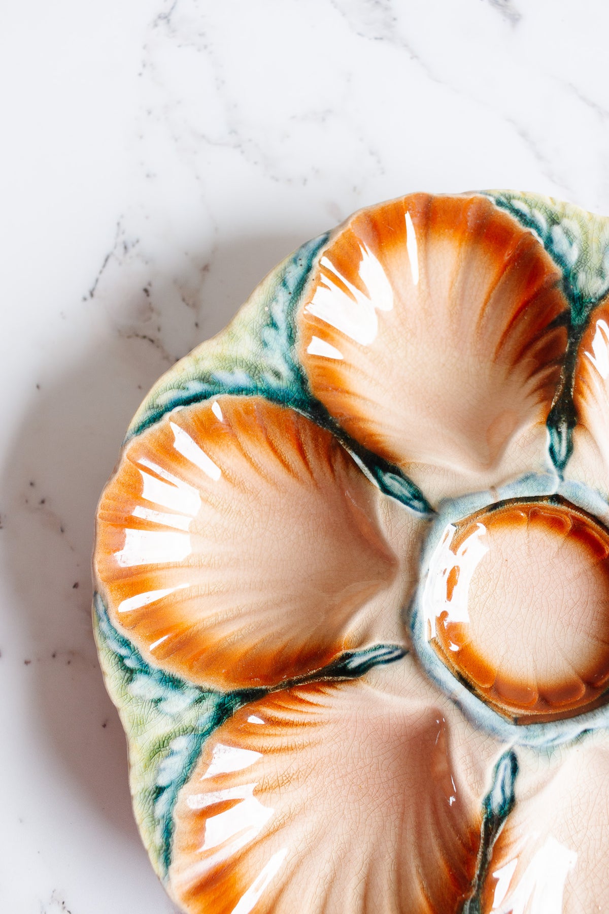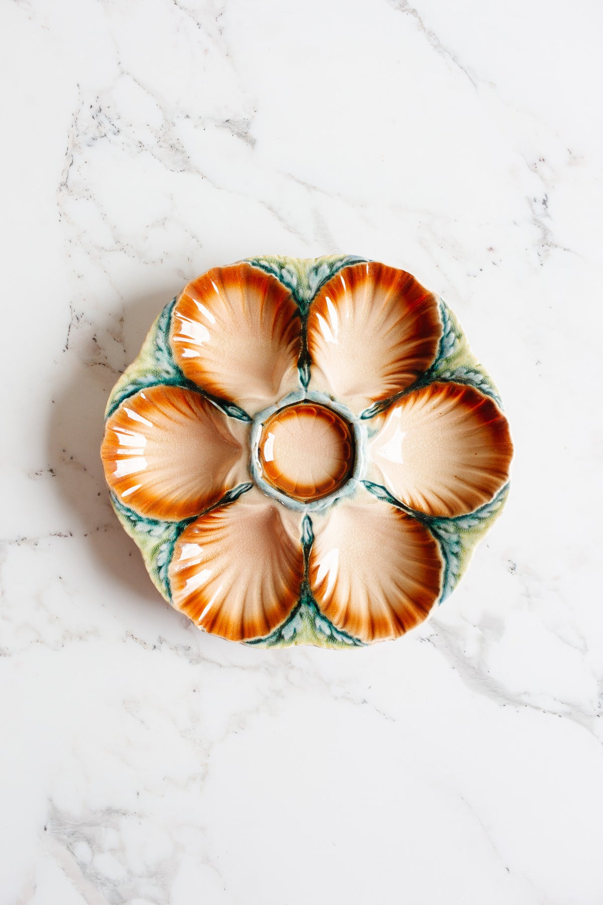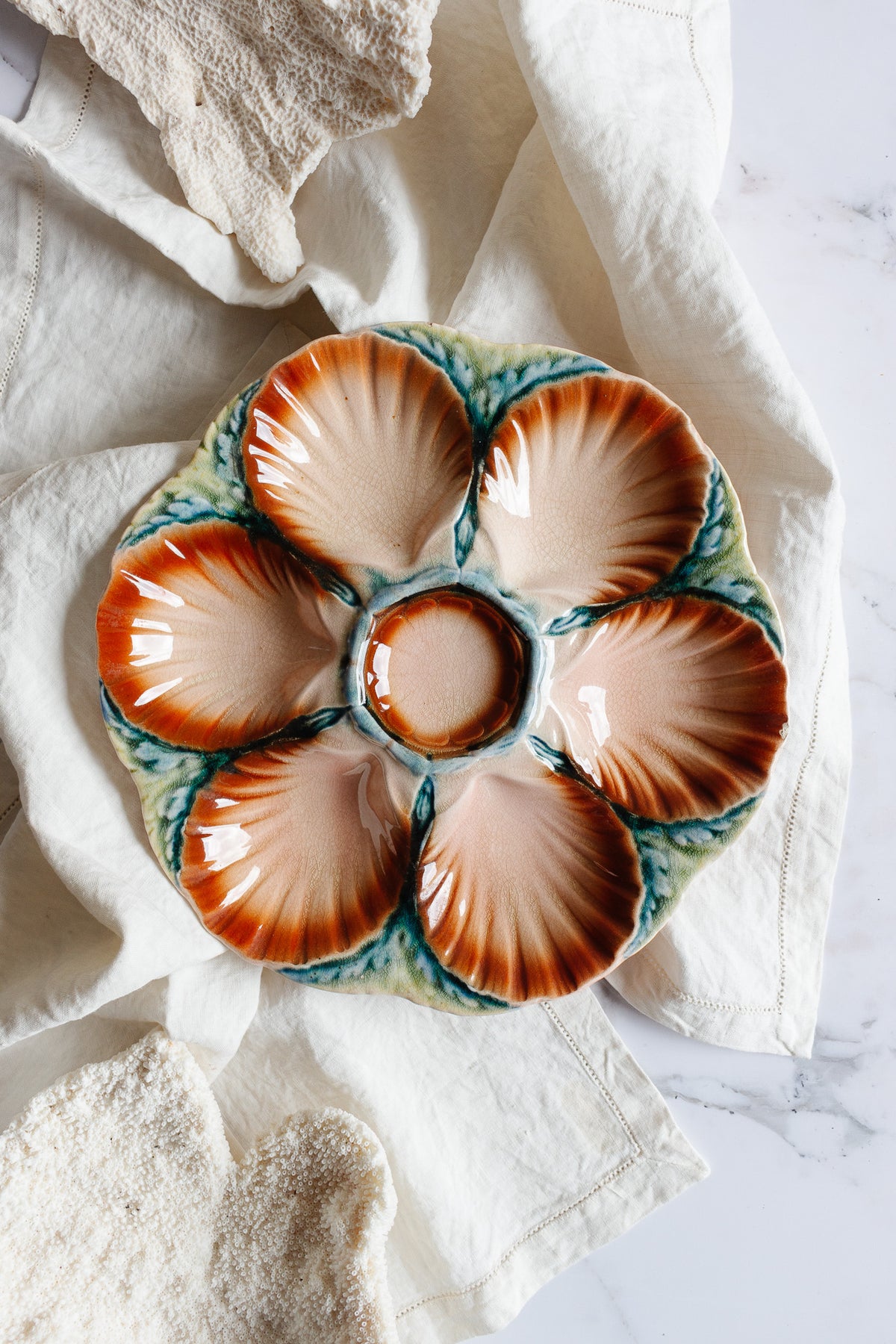 We were lucky enough to find just one of these ironstone oyster plates from famed French manufacturer Sarreguemines.