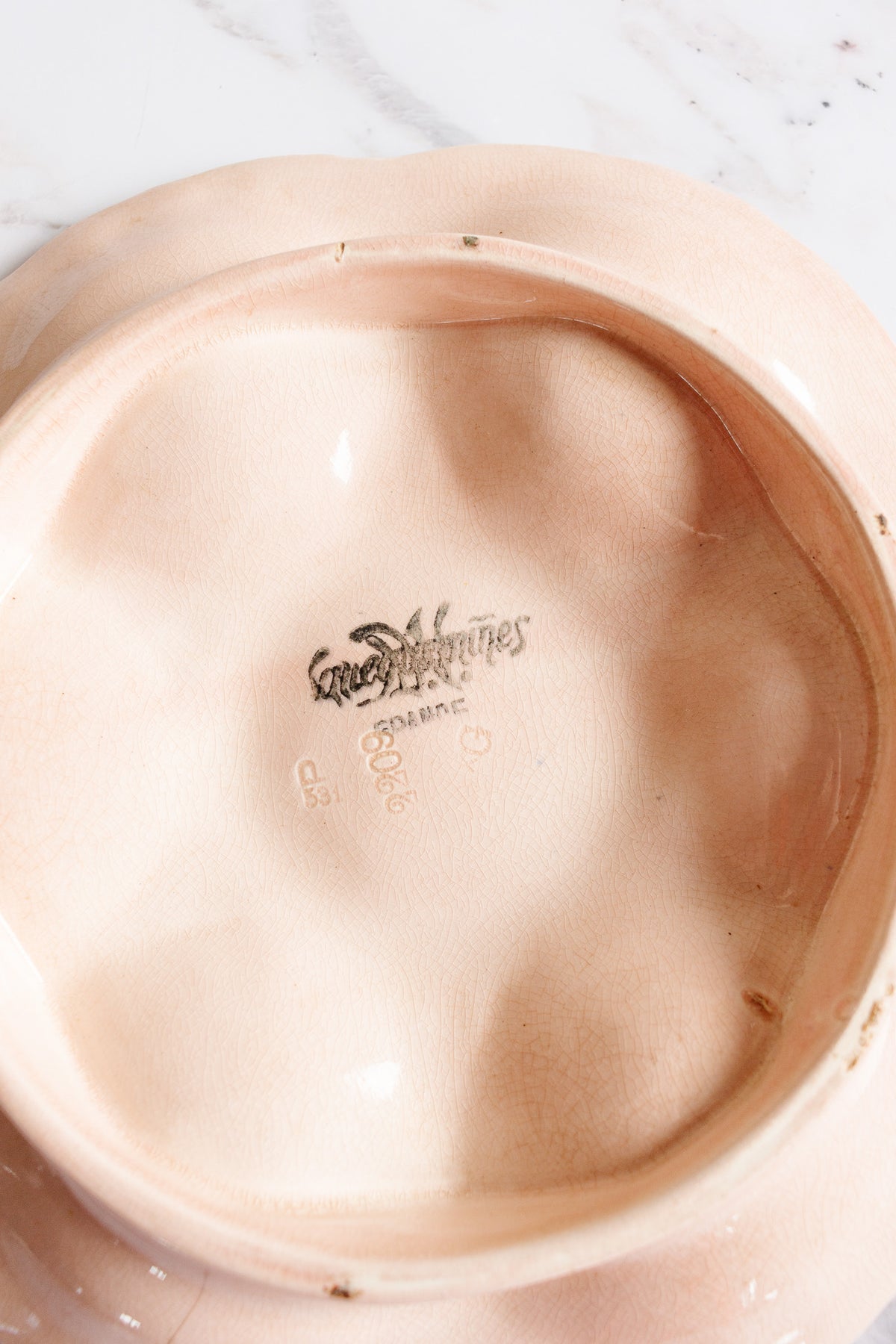 rare antique french Sarreguemines pink & burgundy majolica oyster plate