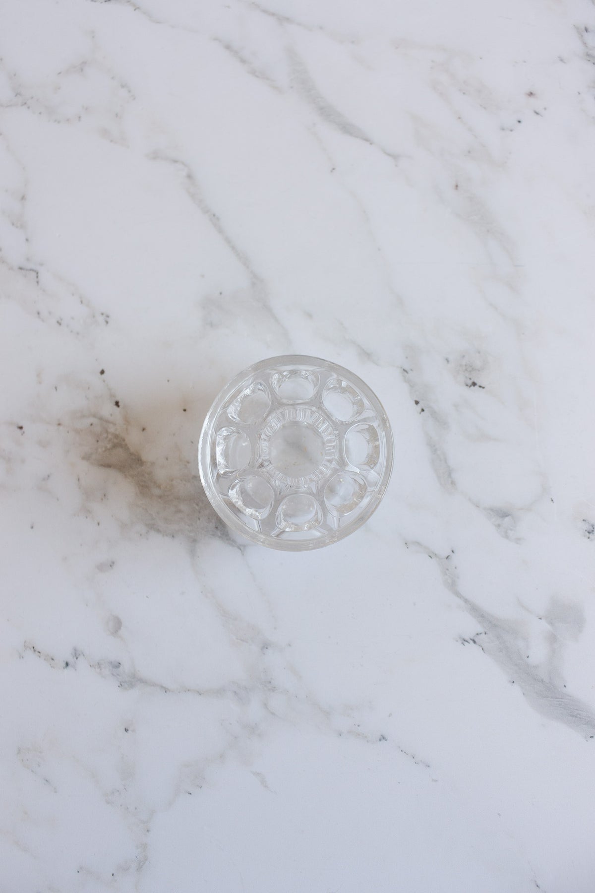 Before floral foam, there were flower frogs. They don't make glass flower frogs anymore so these are true collectibles. These beautifully thick and heavy pieces are used to hold flowers and space them for an arrangement. Use them as is or insert into the neck of a vase. Sourced from an estate in Aix-en-Provence.