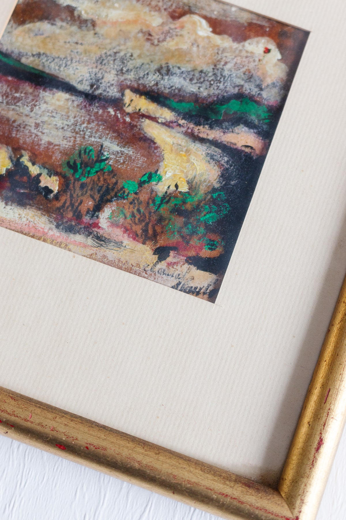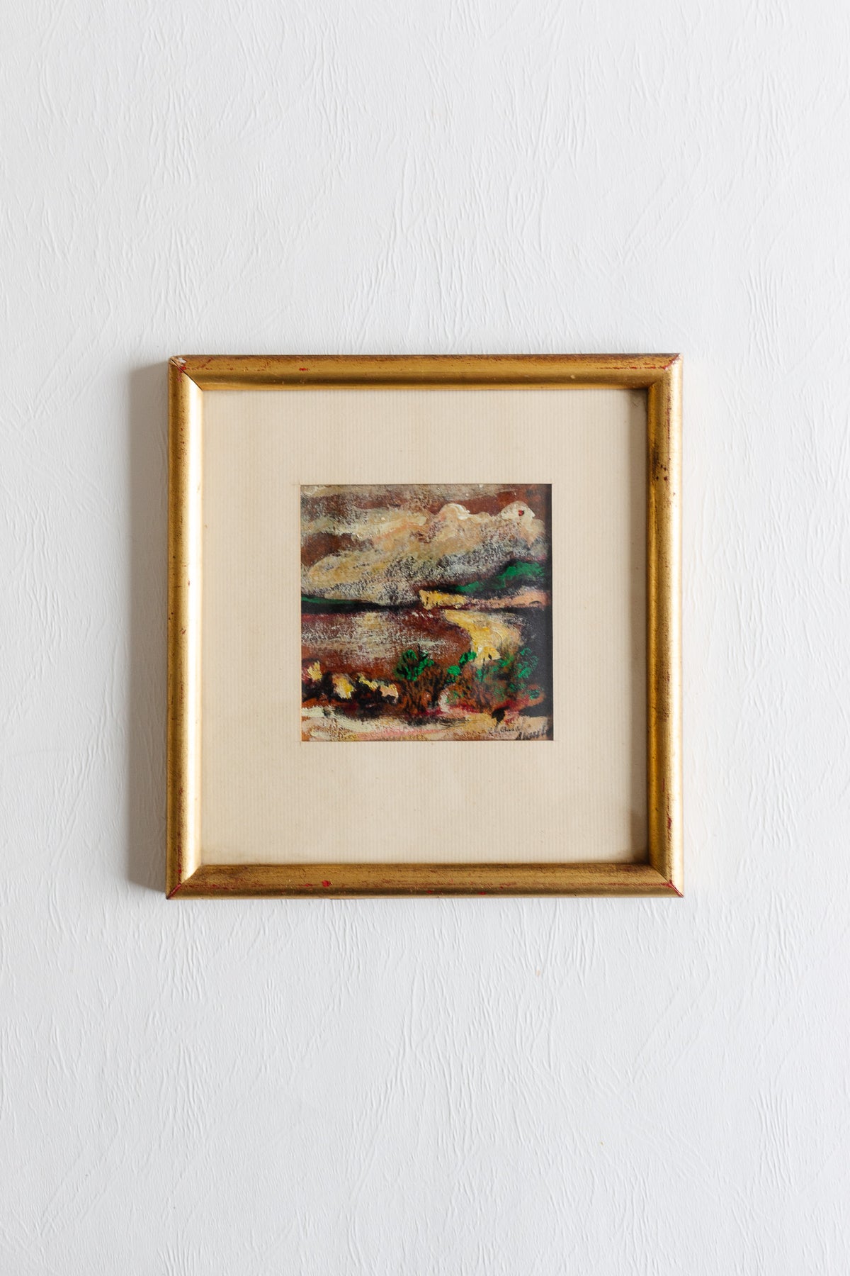 This abstract acrylic on paper has a board affixed to the back and a lovely gilt frame. We sourced this beauty from a home in Marseille.