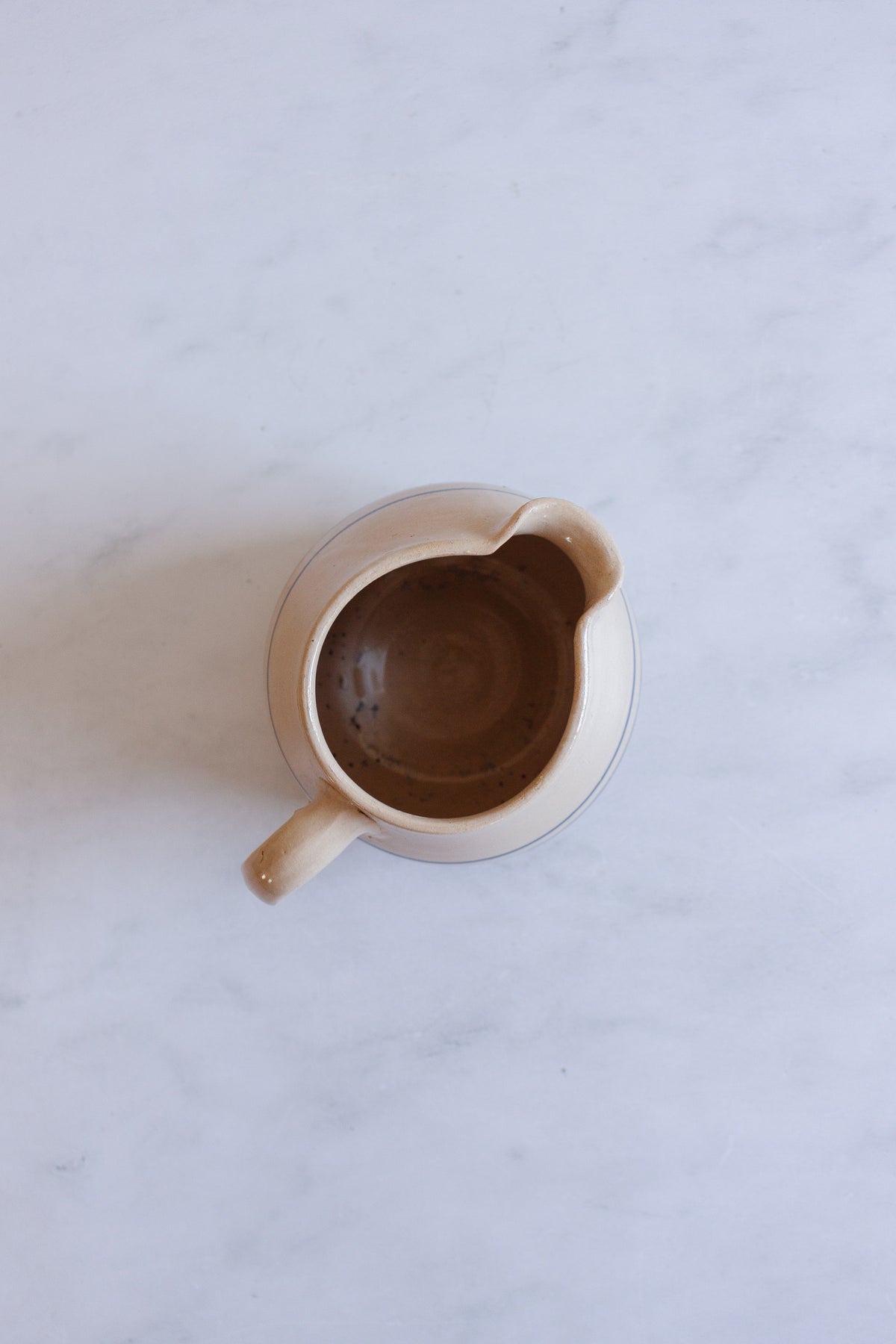A pretty hand thrown pottery piece with classic blue stripes and lots of beautiful hand crafted imperfections.