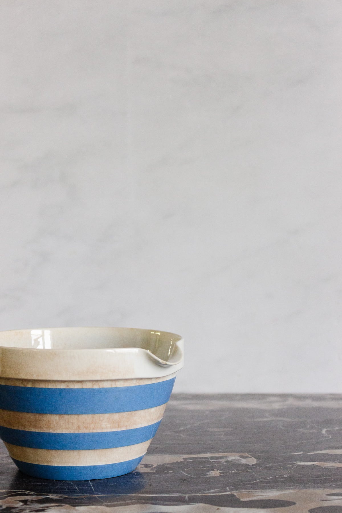 T.G. Green and Co. is a British company known for its iconic line of ceramic. Founded in 1864 by Thomas Goodwin Green, the company gained fame for its durable, practical, and stylish kitchenware. Cornishware, introduced in the 1920s, became the brand's hallmark, recognized by its distinctive blue-and-white striped design, which was inspired by Cornwall's blue skies and white-crested waves. Over the years, the range expanded to include other colors and designs.