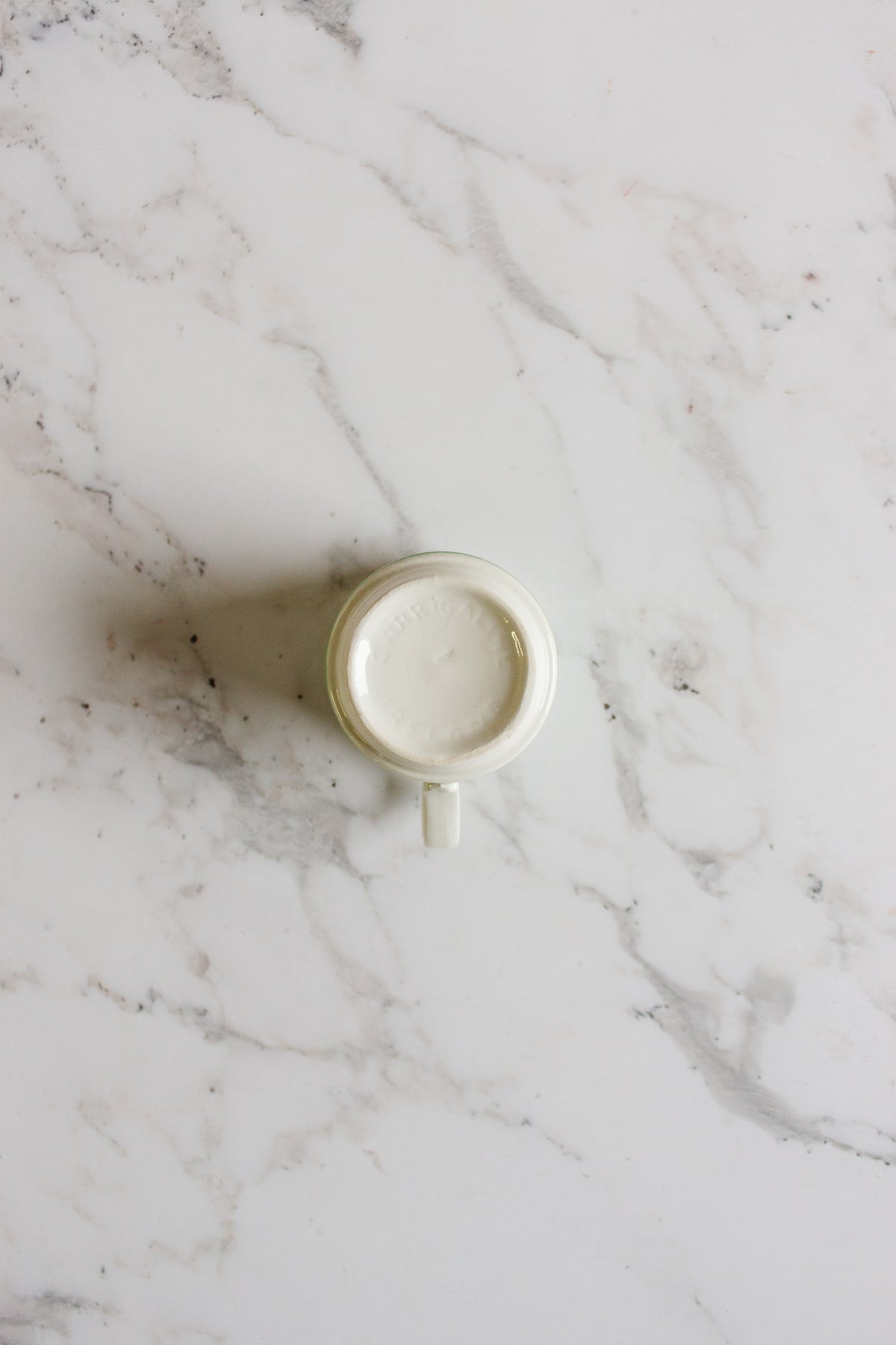 Set includes one pudding bowl, one mug, and one small pitcher. Sourced from a family estate.