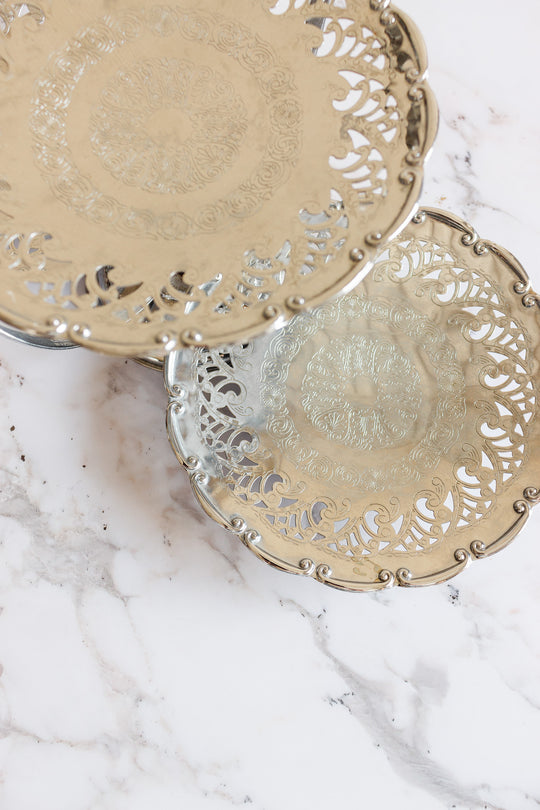 This unusual e tier cake stand folds flat like a shell, then opens to reveal the trio of plates! Perfect for entertaining (we're thinking high tea!) and guaranteed to add drama and intrigue to your tablescape. Sourced from a brocante in Marseille.