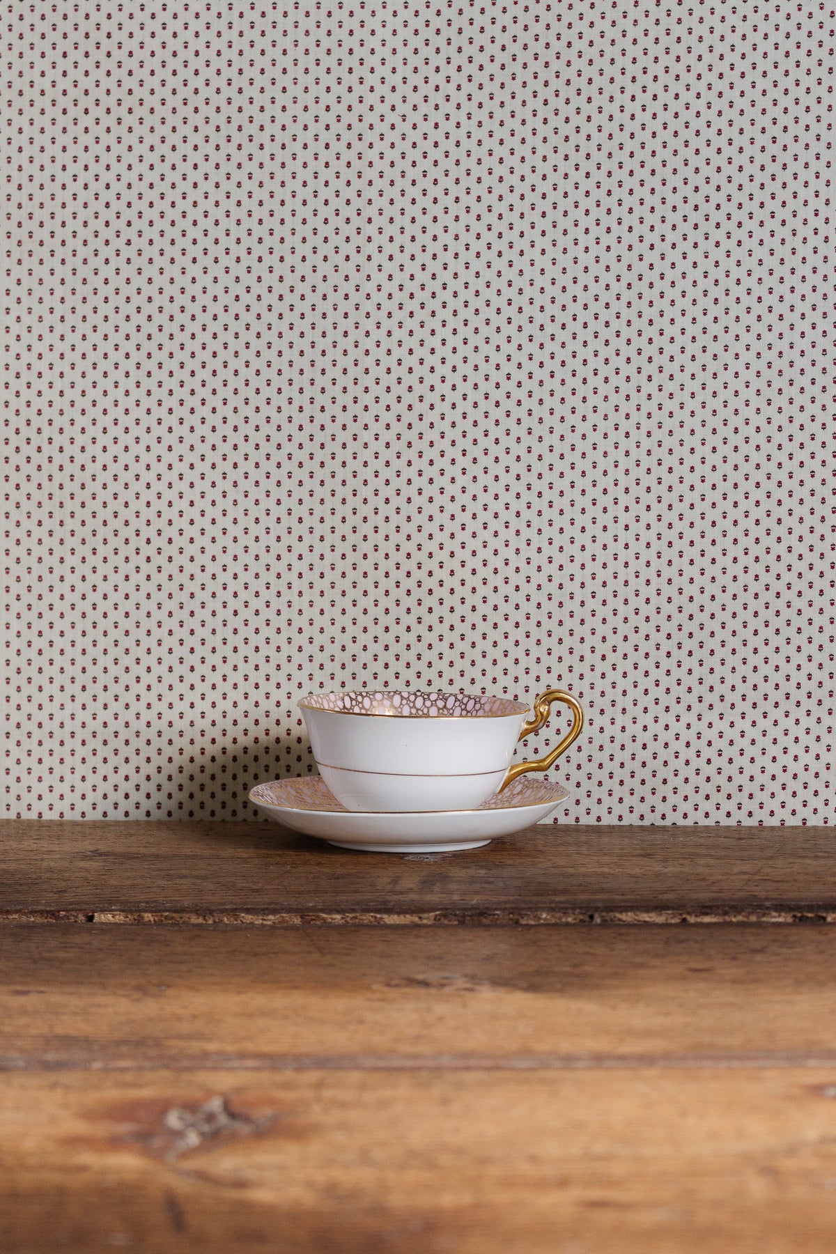 The intricate gold detailing complements the soft pink glaze, creating a timeless aesthetic that’s both eye-catching and refined. Sourced from a brocante in Marseille.