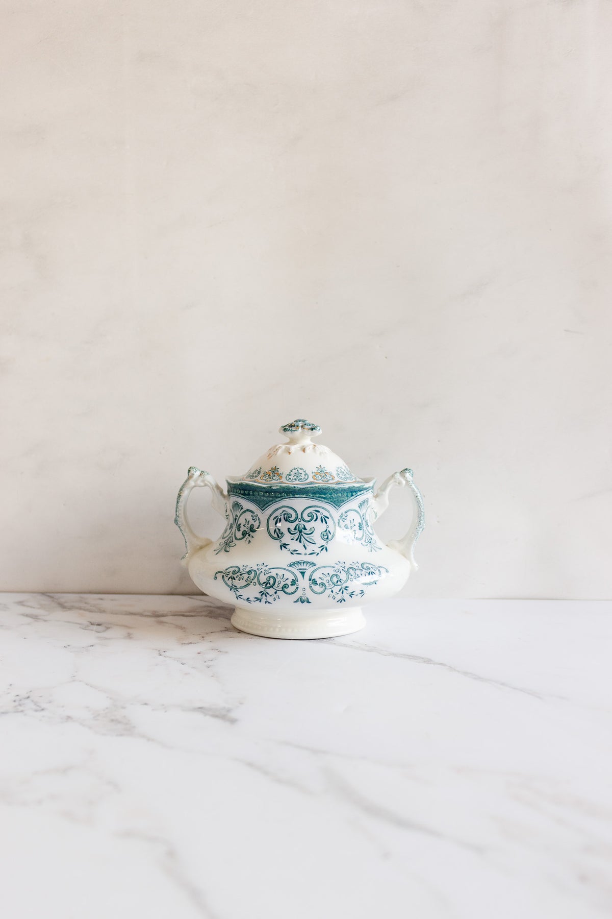 rare johnson brothers aqua regent creamer, sugar bowl, and covered dish set