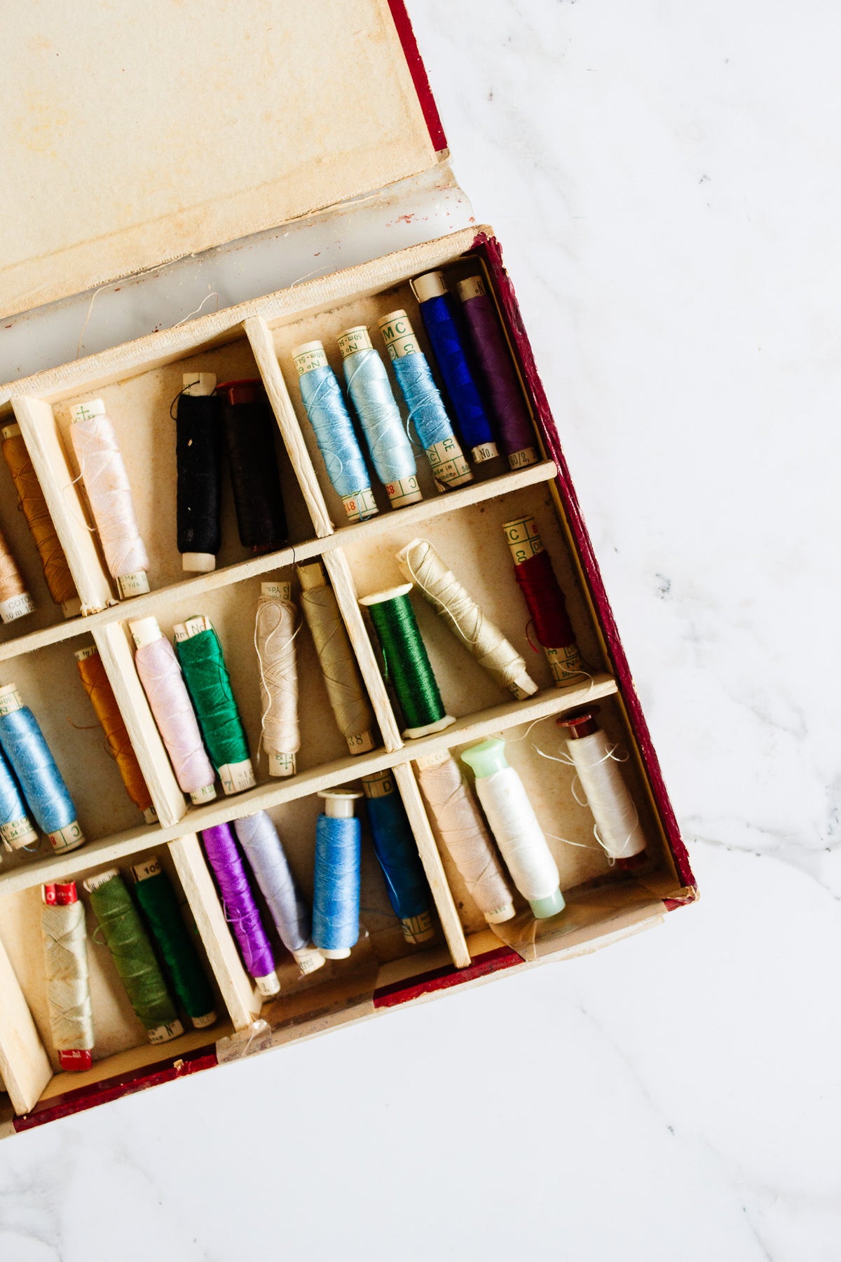 Antique Swiss "mercerie" thread storage box dating to the early 20th century. Originally used to store sewing threads or notions, it features exquisite printed typography typical of period European packaging. A rare survivor of everyday retail life, this box offers understated beauty and historical charm—perfect for display in a sewing room, studio, or as part of a vintage packaging collection.