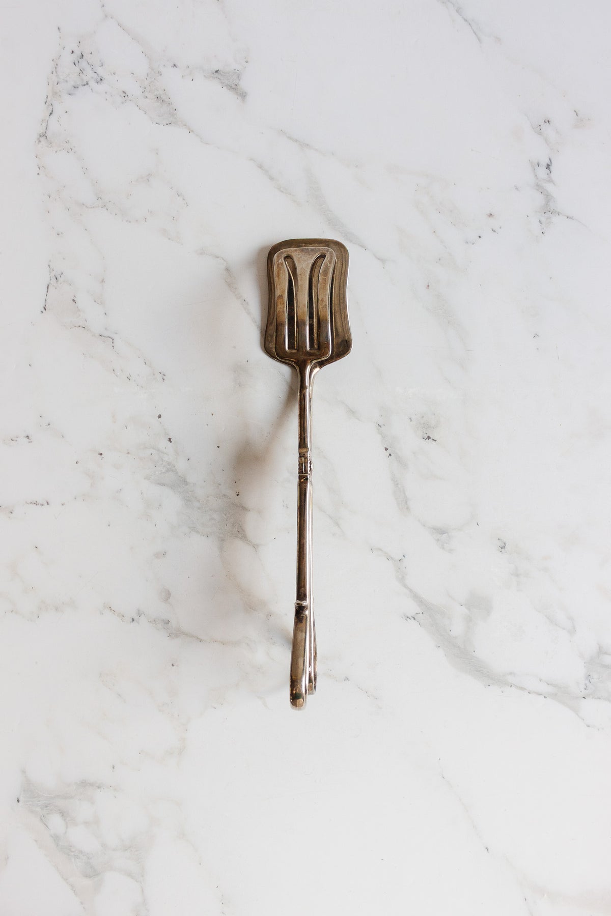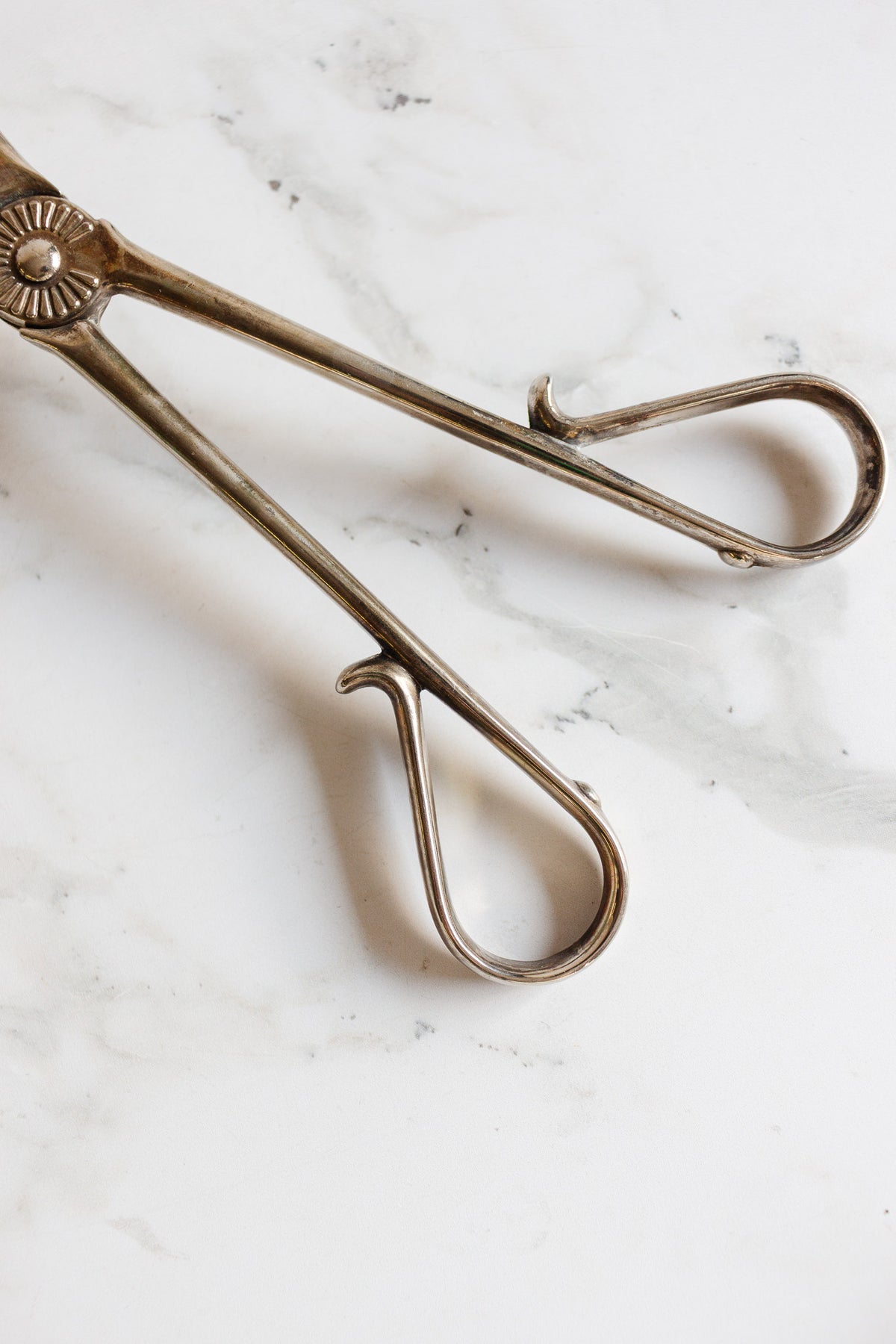 Vintage French silverplate serving tongs sourced from a brocante in Marseille. Designed with classic detailing and a smooth grip, they’re ideal for serving asparagus, salad, or pastries. A practical and refined addition to any table setting.