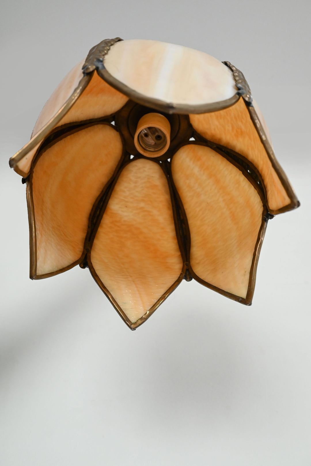 This incredible vintage tulip shaped pendant slag lamp has the loveliest shades of pearl and cream for each "petal". As with all vintage lighting, we recommend rewiring.