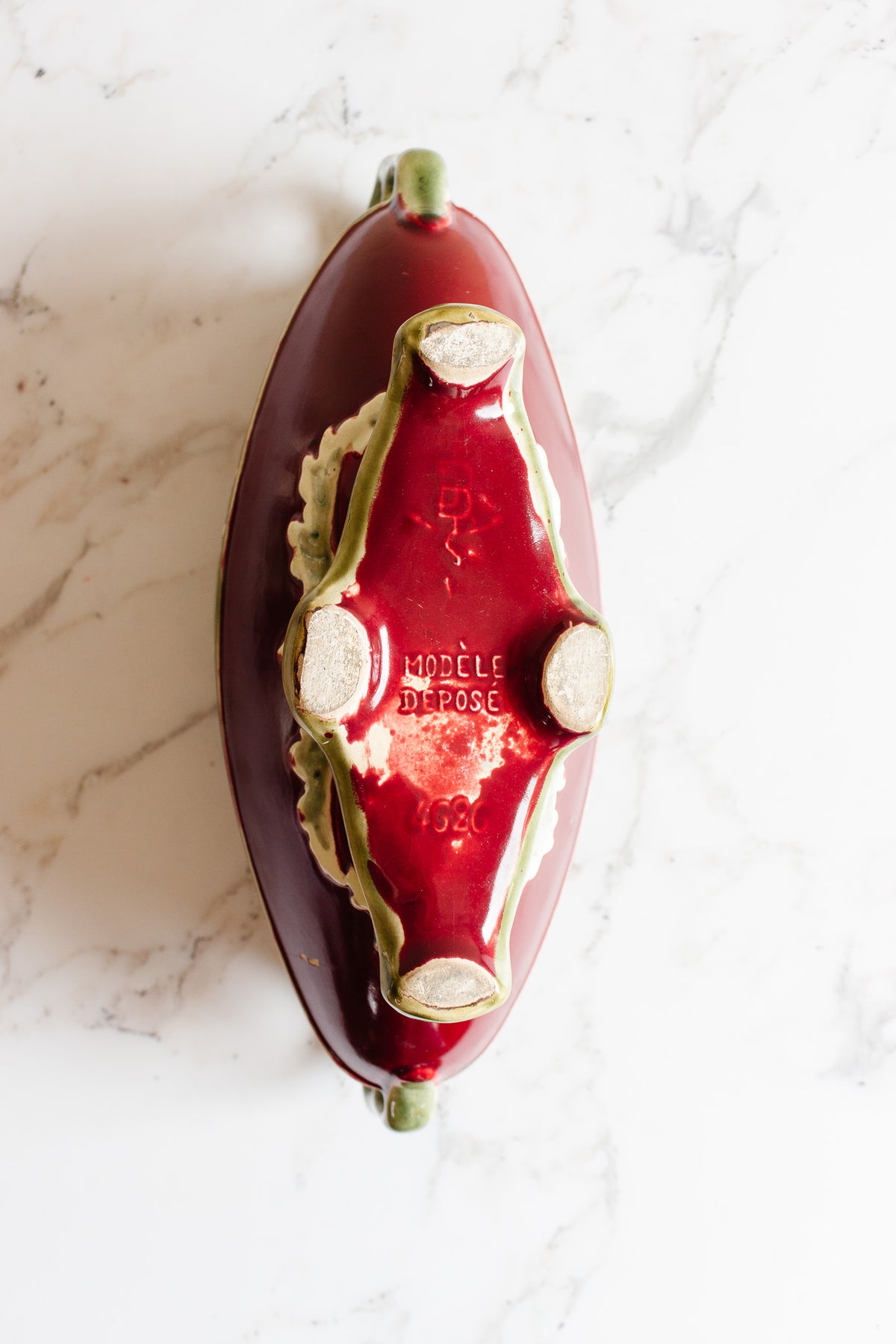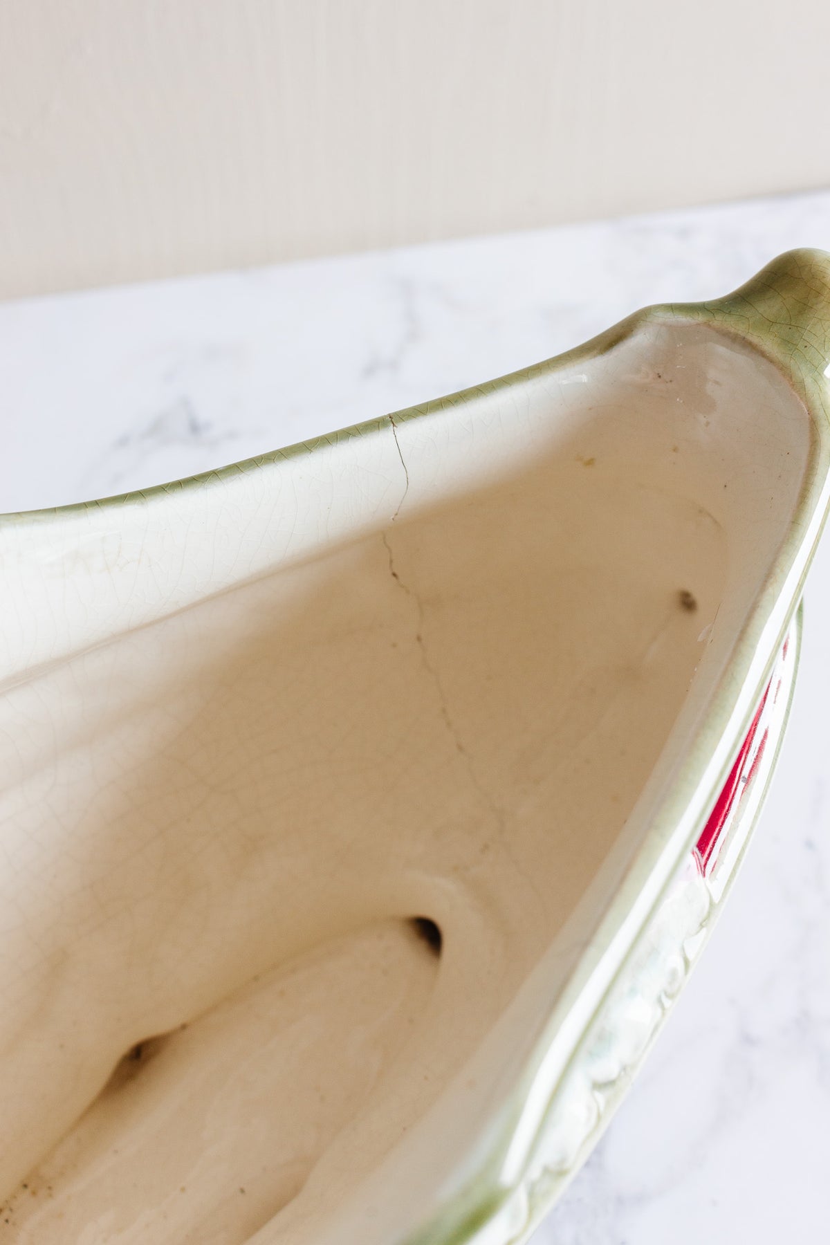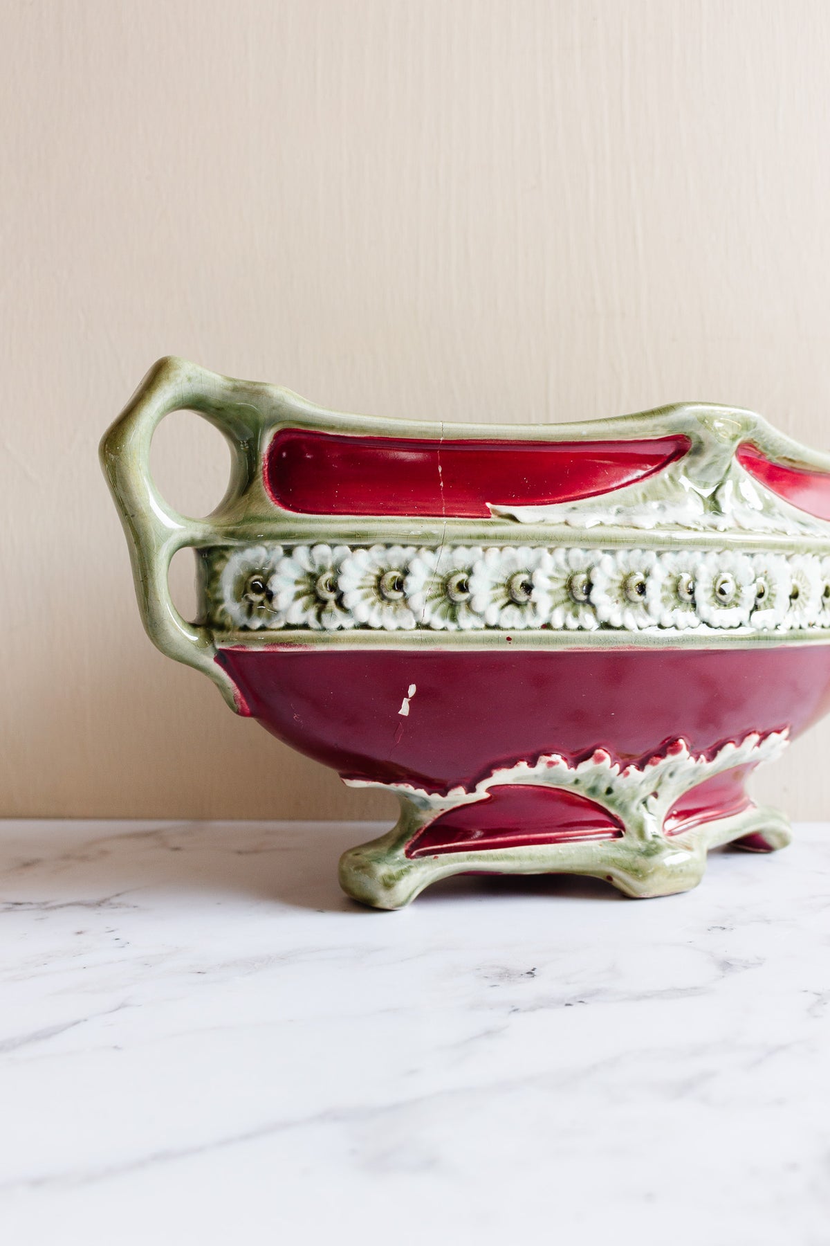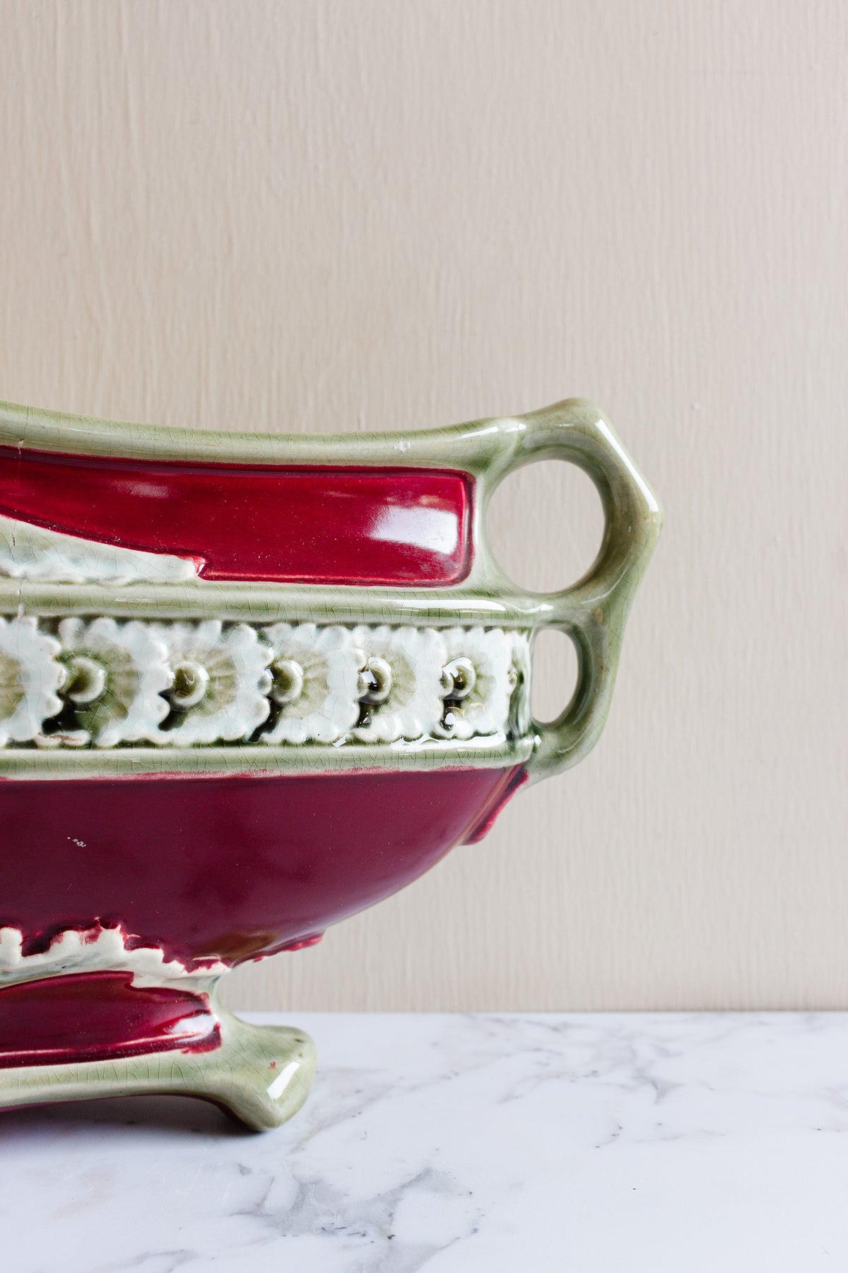 With its simple yet striking design, gorgeous handles and classic vibrant majolica finish, it is truly a work of art and heirloom decor piece.