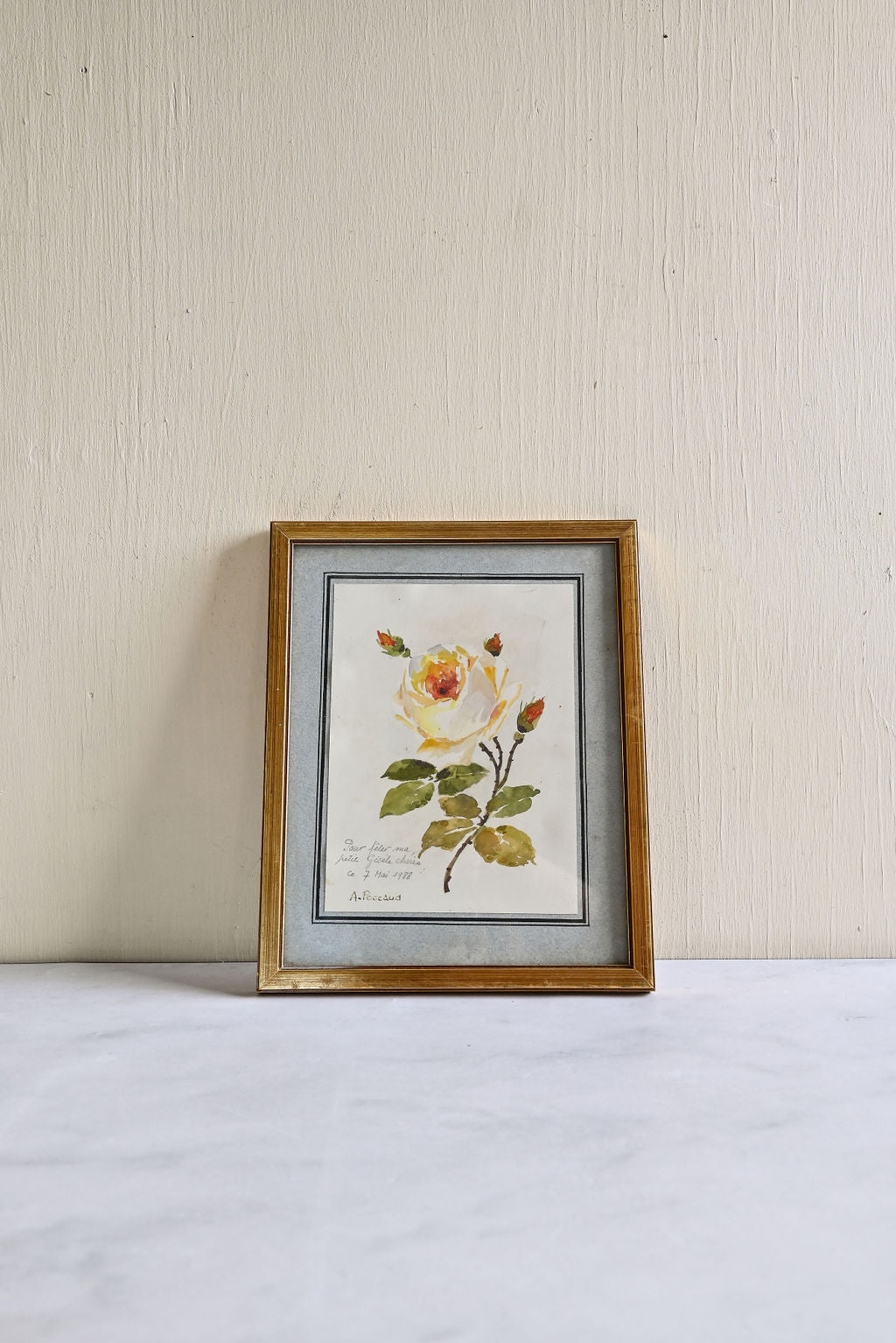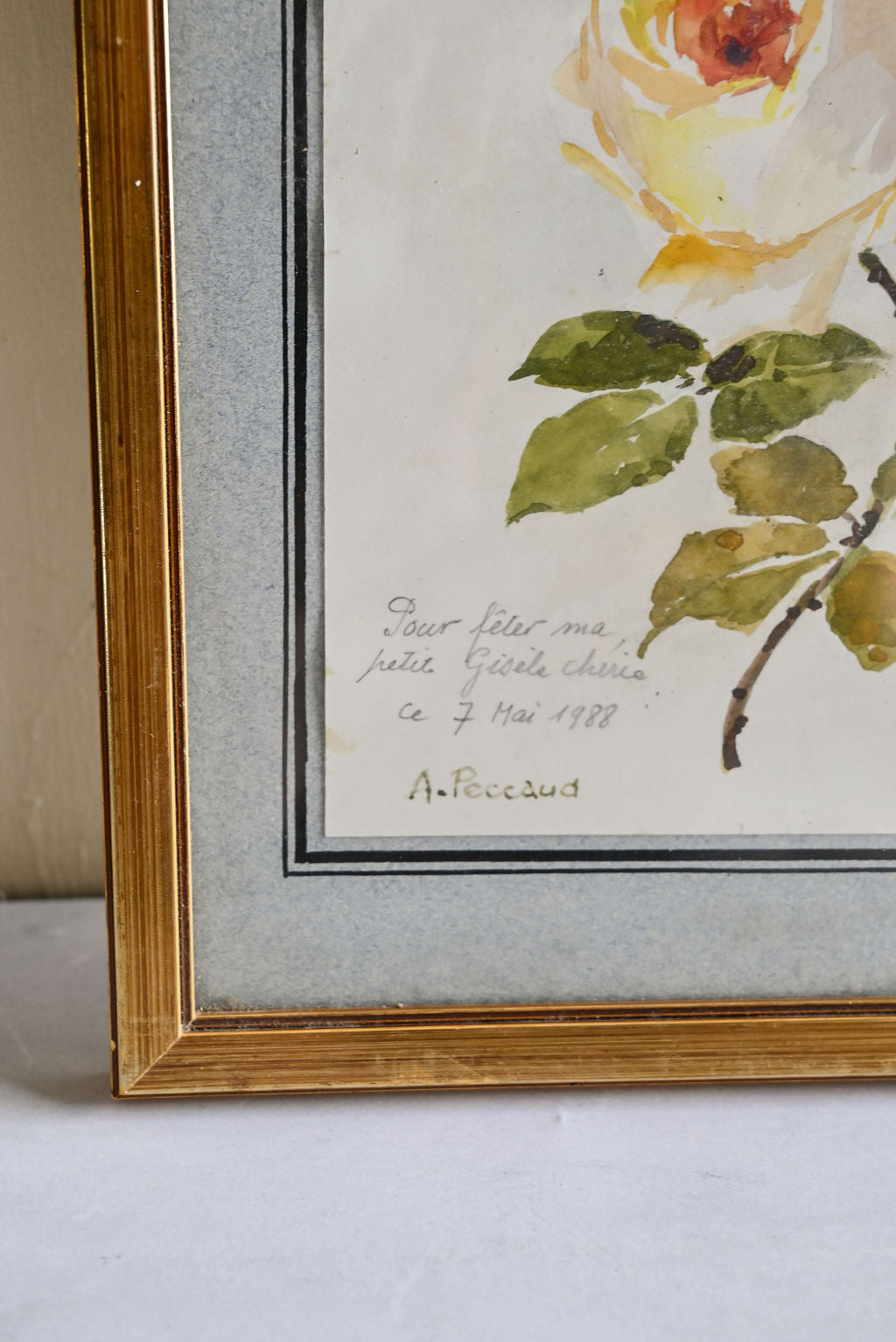 This beautiful and delicate vintage french watercolour was signed by the artist who gifted this to his daughter in 1988. He wrote: