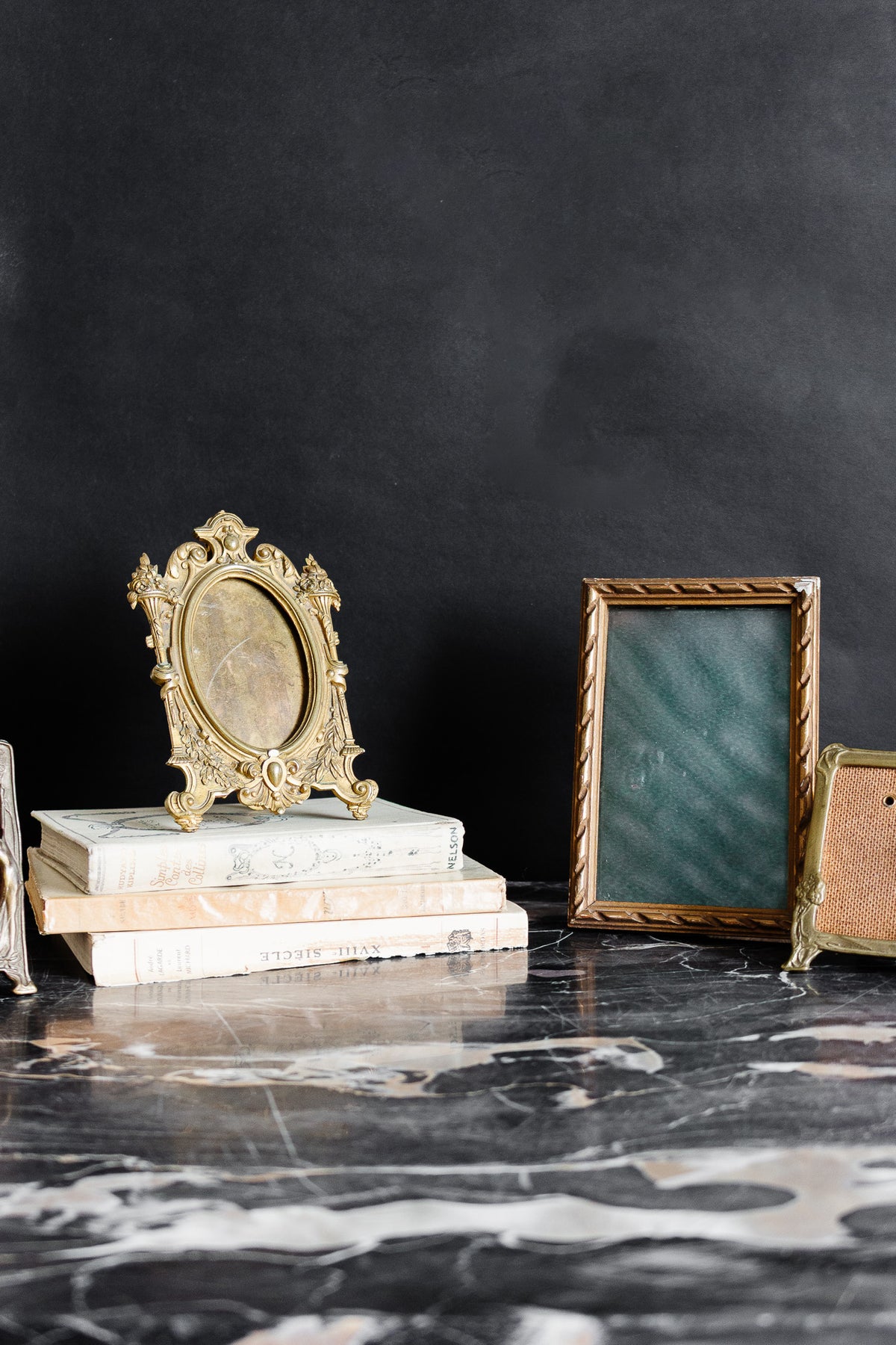 A stunning and regal solid brass standing frame ready to forever hold a memory. Sourced from a brocante in Marseille.