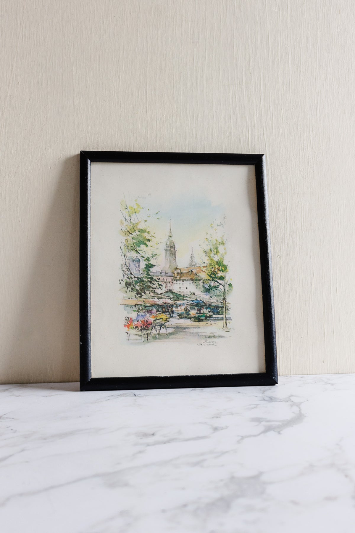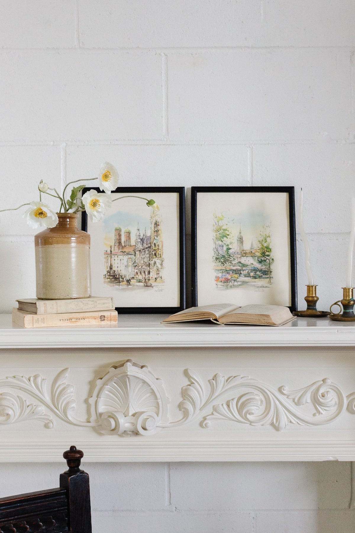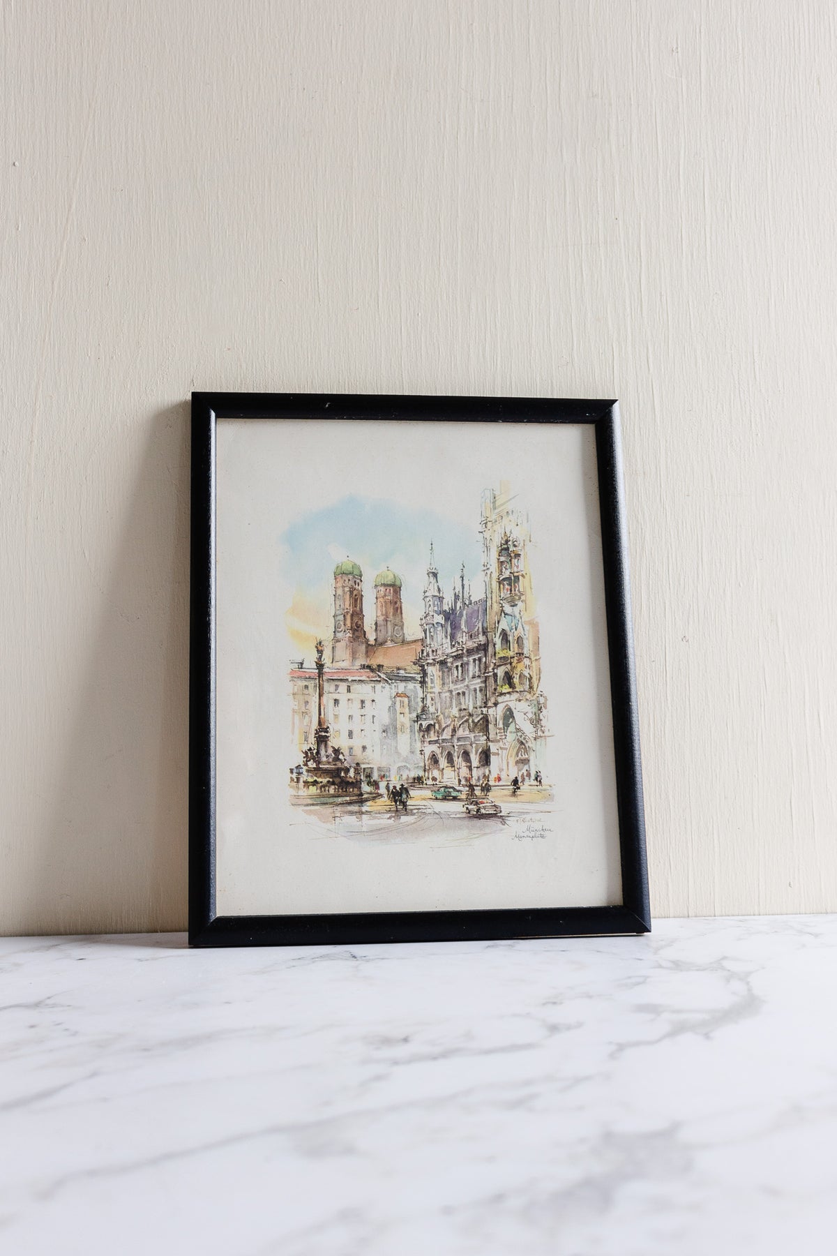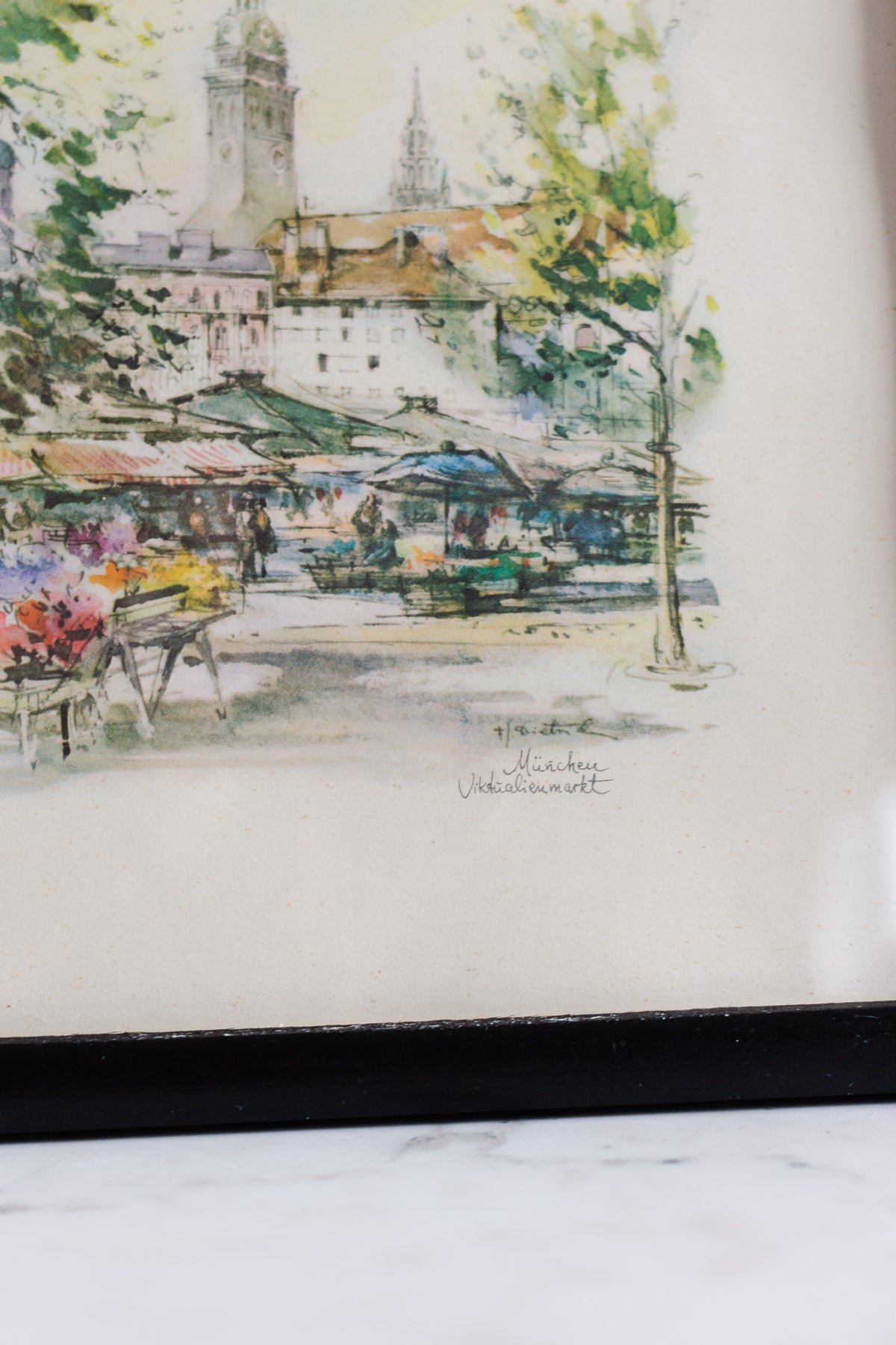 These stunning vintage German prints, likely created as souvenirs, feature handwritten titles and are each signed by the artist, adding a personal and unique touch to each piece.