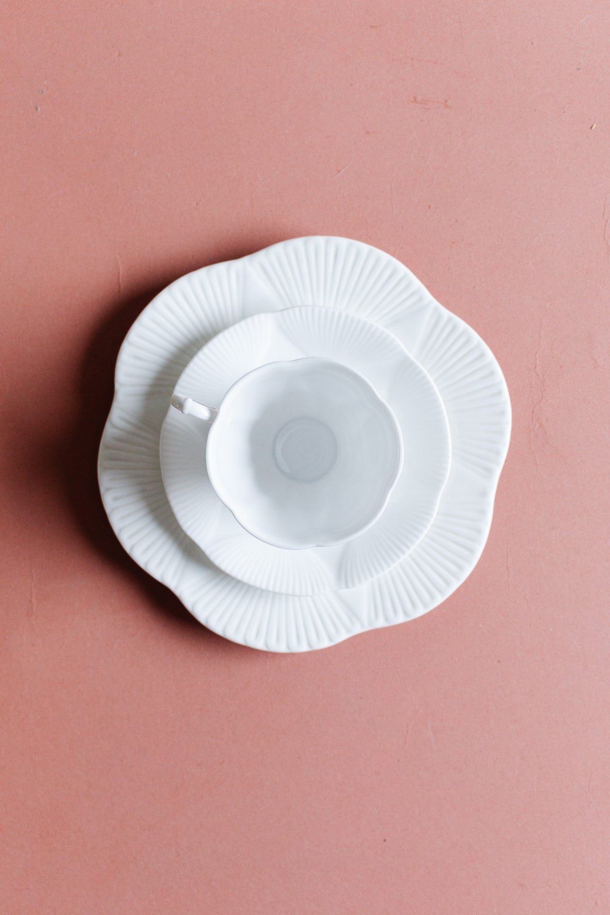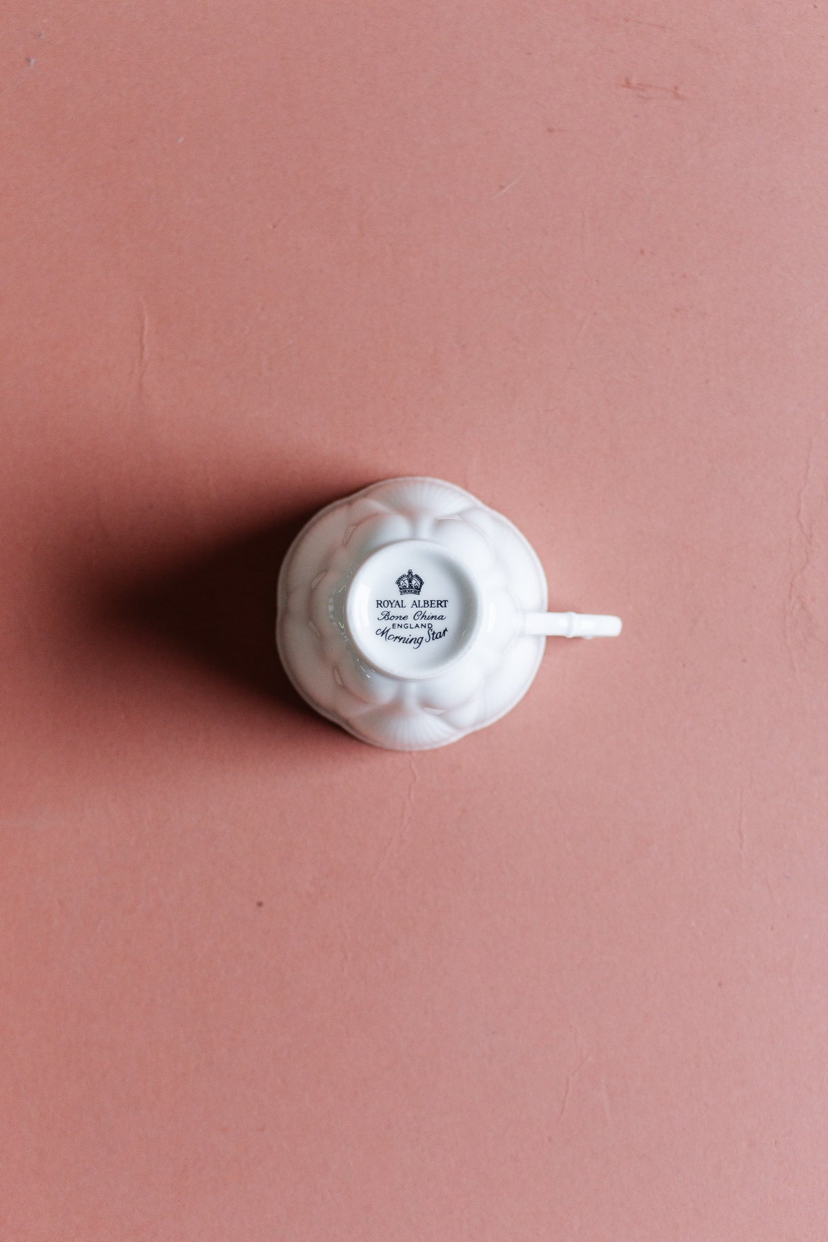 vintage white tea set made up of Shelley and Royal Albert pieces