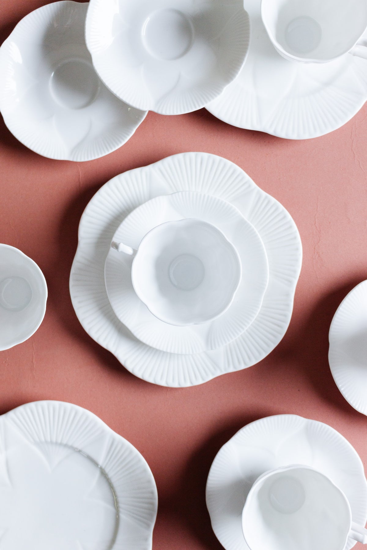 We came across this gorgeous set at a brocante in France! It looks seamless but upon closer inspection,  it is revealed as a combined set of Shelley and Royal Albert pieces!
