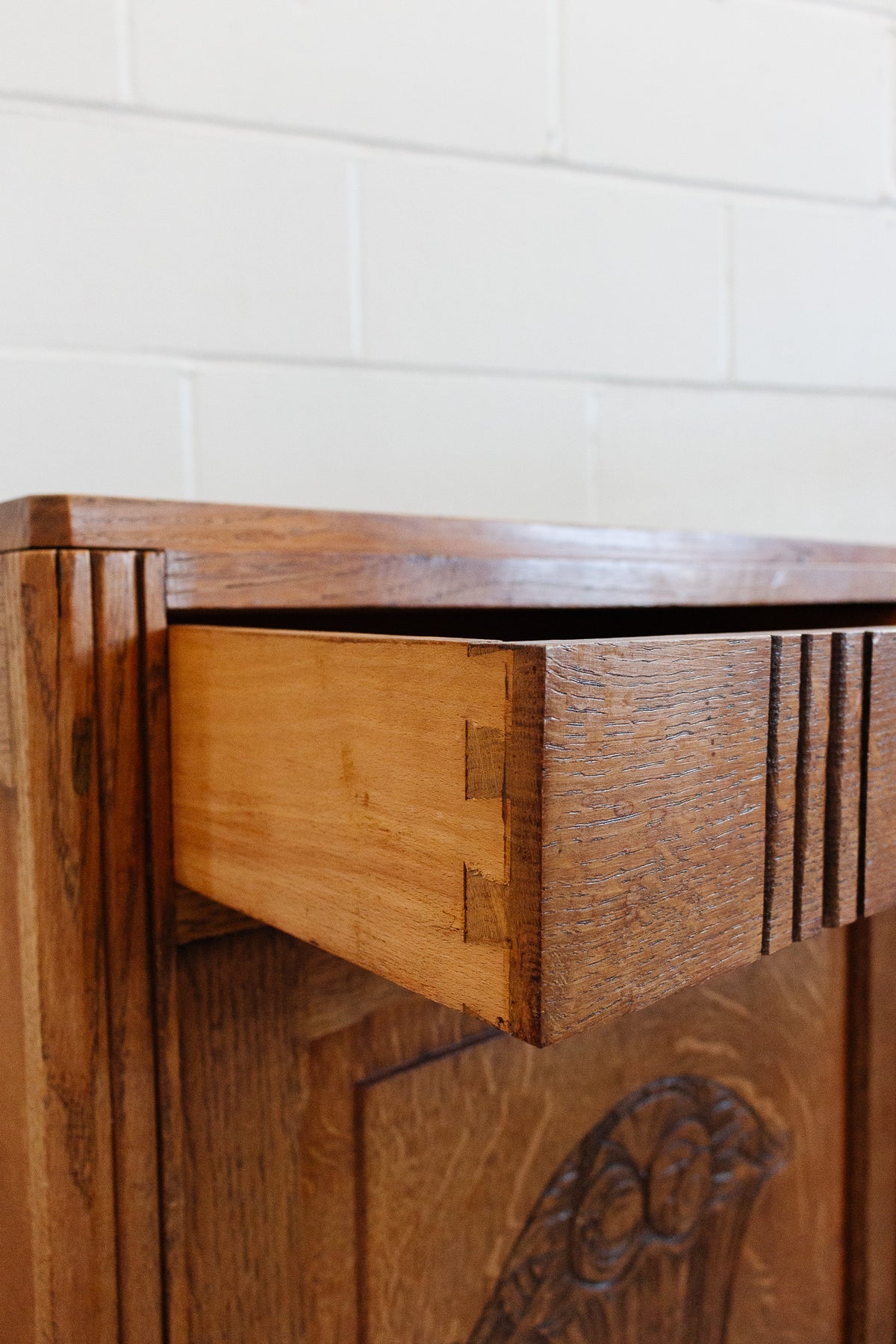 vintage French carved oak art deco confiture cabinet