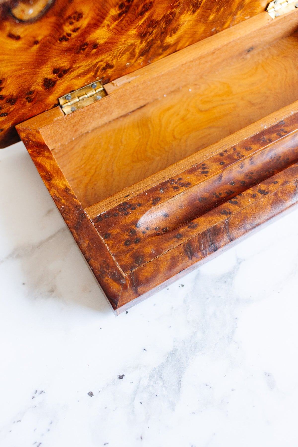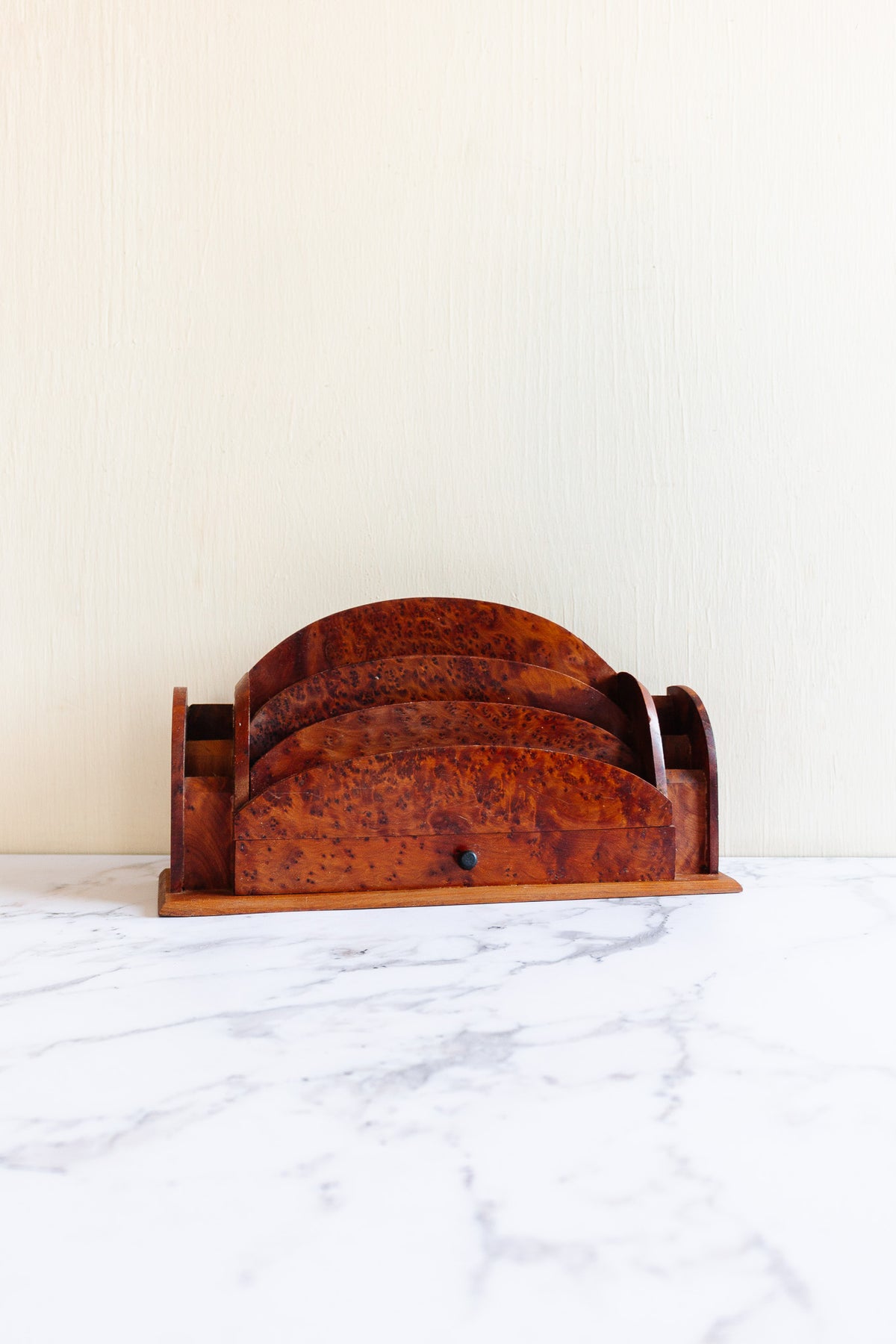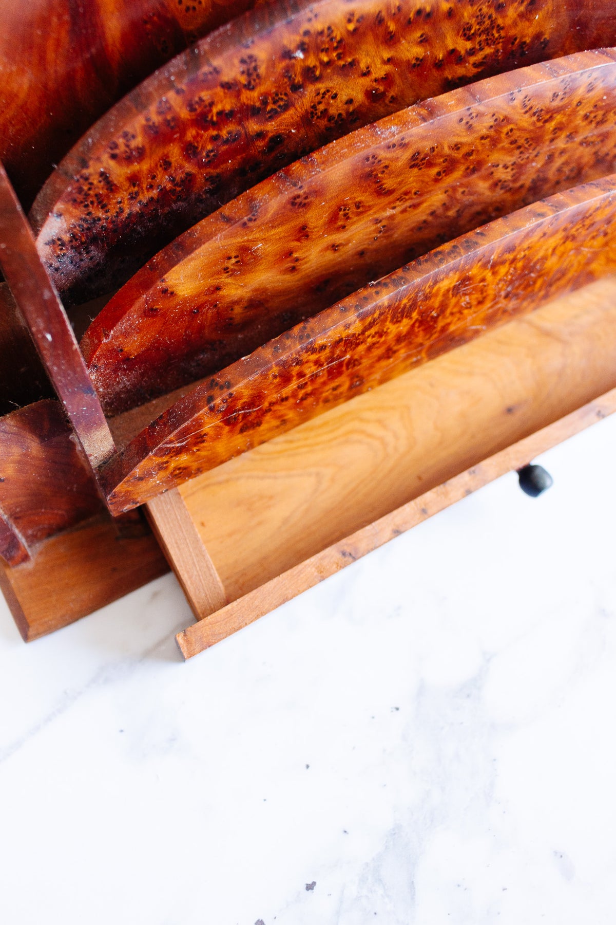Elevate your work from home space with this incredible desk organizer set, beautifully crafted from burl elm wood.