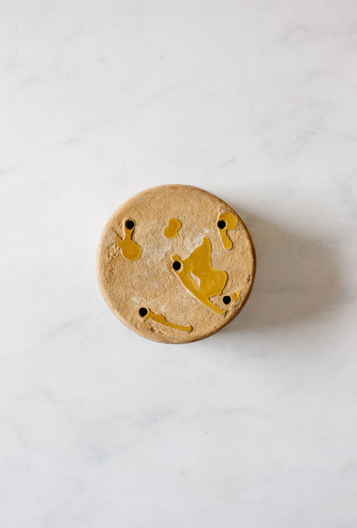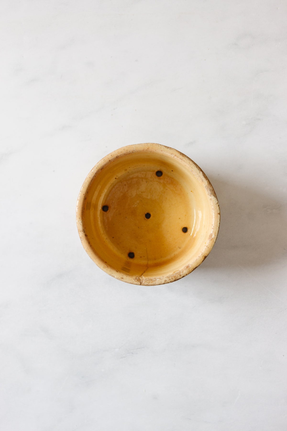 These beautiful pots were once used as a mold & strainer for a type of soft cheese called faisselle. We think that now they make for a gorgeous candle or tealight holder, a perfect vessel for your savon de Marseille soap, or a petite berry strainer. Please note this piece does show signs of antique wear and age, as pictured.